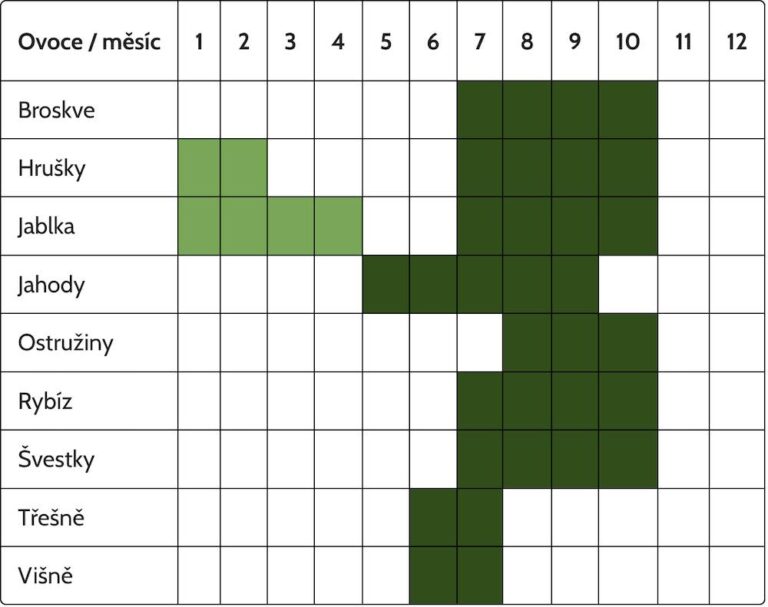 Přehled vybraného českého ovoce a zeleniny dle sezóny