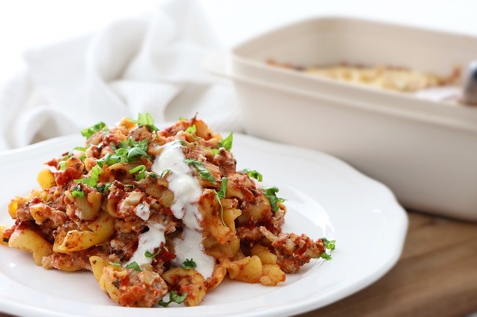 Zapečené těstoviny s kešu krémem a rajčaty
