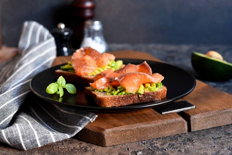 Obložený chléb s avokádem a uzeným lososem (1 porce)